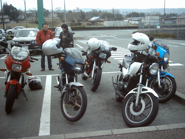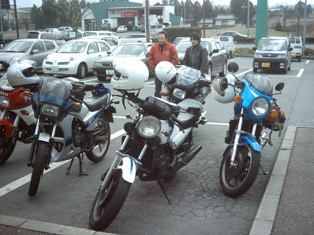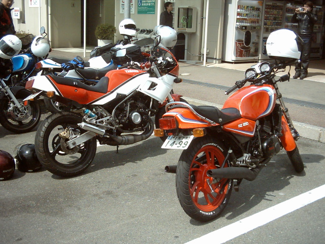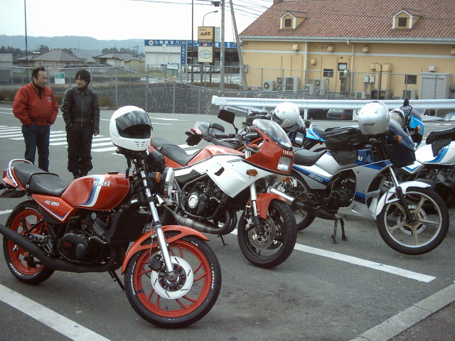 30分ほど遅れて、大分から山さんのRZ250R&sawadaさんの4L3が到着。