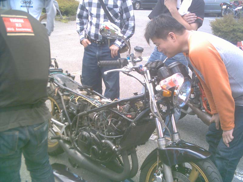下に降りてきて「上にRZRの最終型がいましたよ」とのコトだったので上がって行くと、yasu@SLAPDASHさん(3HM)が到着してた。
