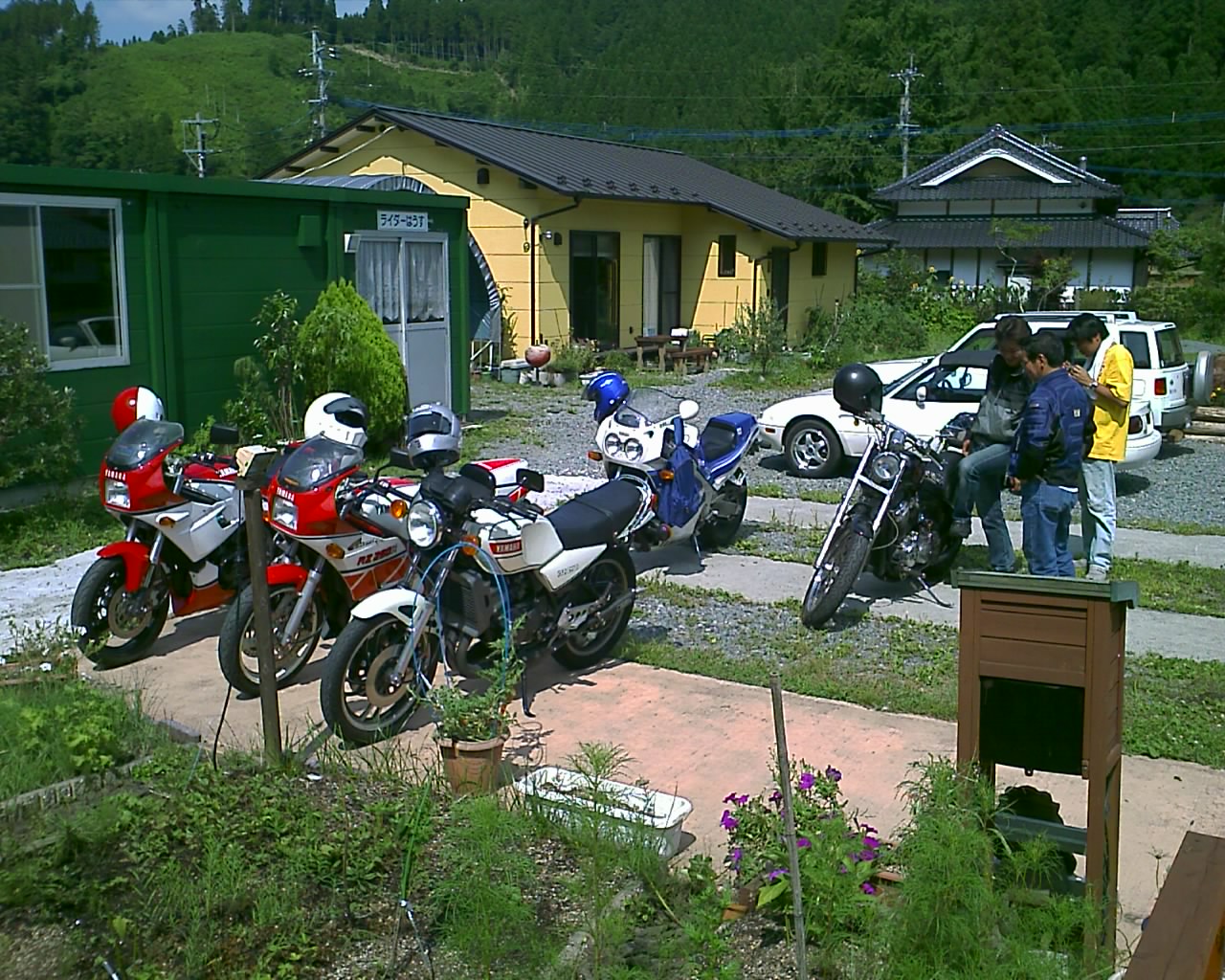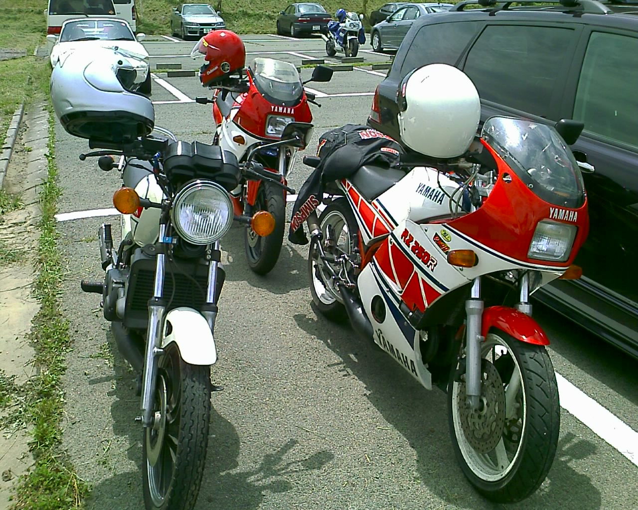 FZR750のうえださん、RZ250R(改350R)のジョルトさん、RZ250(改350)のみけぽさん、STEEDのひろしさの同僚(?)の方、道星号のひろしさん&リンダ嬢、RZ250Rのメルどんの計7人。