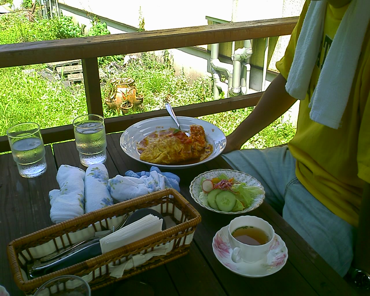 店内は満員だったので外の川沿側のテラスに陣取った。
