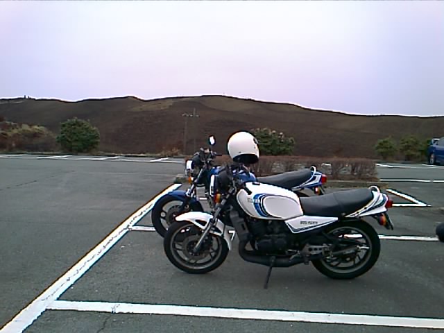 観光客の車やバイク集団が沢山来ているだろうから「第三駐車場にすんなり入れるかなぁ」と心配してたが、ジョルトさんがポツンと一人寂しく膝を抱えて座ってた・・。
