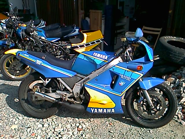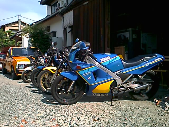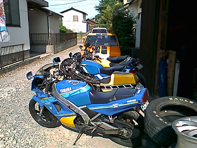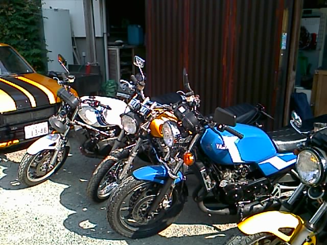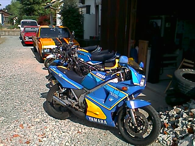 またダベっていると、組長が自分のRZのタンクの修理を始めた。